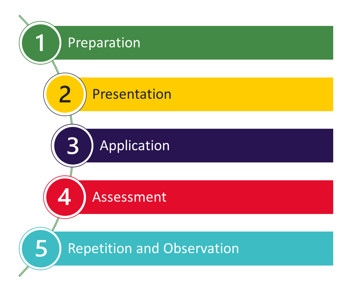 Review with the trainee what is about to happen – Presentation and Practice Steps.